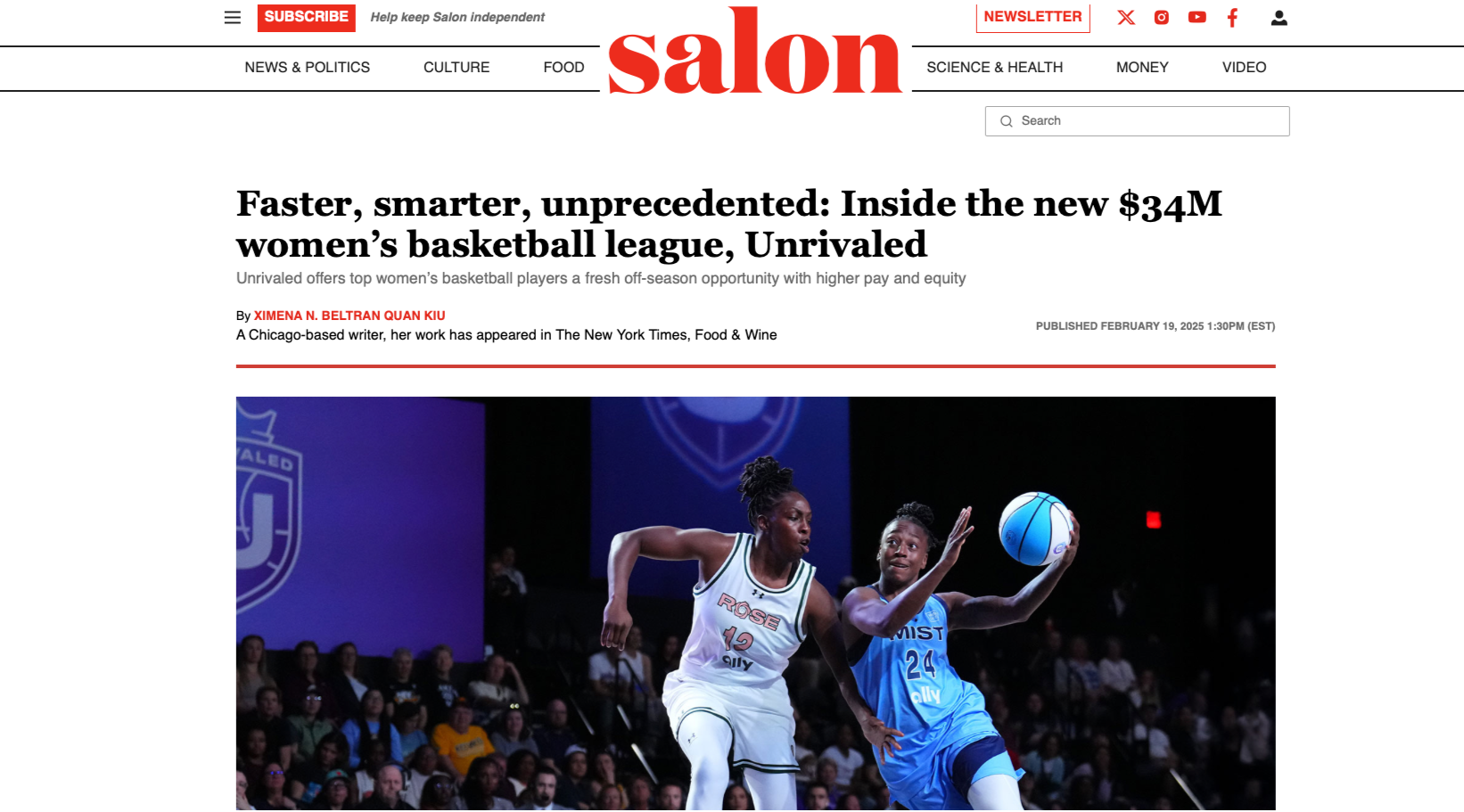 Inc. (February 18, 2025): Unrivaled’s Game-Changing Bet: How These WNBA Stars Are Reimagining the Business of Women’s Sports Co-founders Napheesa Collier and Breanna Stewart raised $34 million to redefine women’s basketball and created the most equitable league in pro sports.